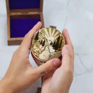 Ověřený a žádaný motiv našich zákazníků s dvěma gravírováními na vnější a vnitřní straně víka. Na kompas vyhotovíme motiv krajiny a vzkaz dovnitř víčka.
