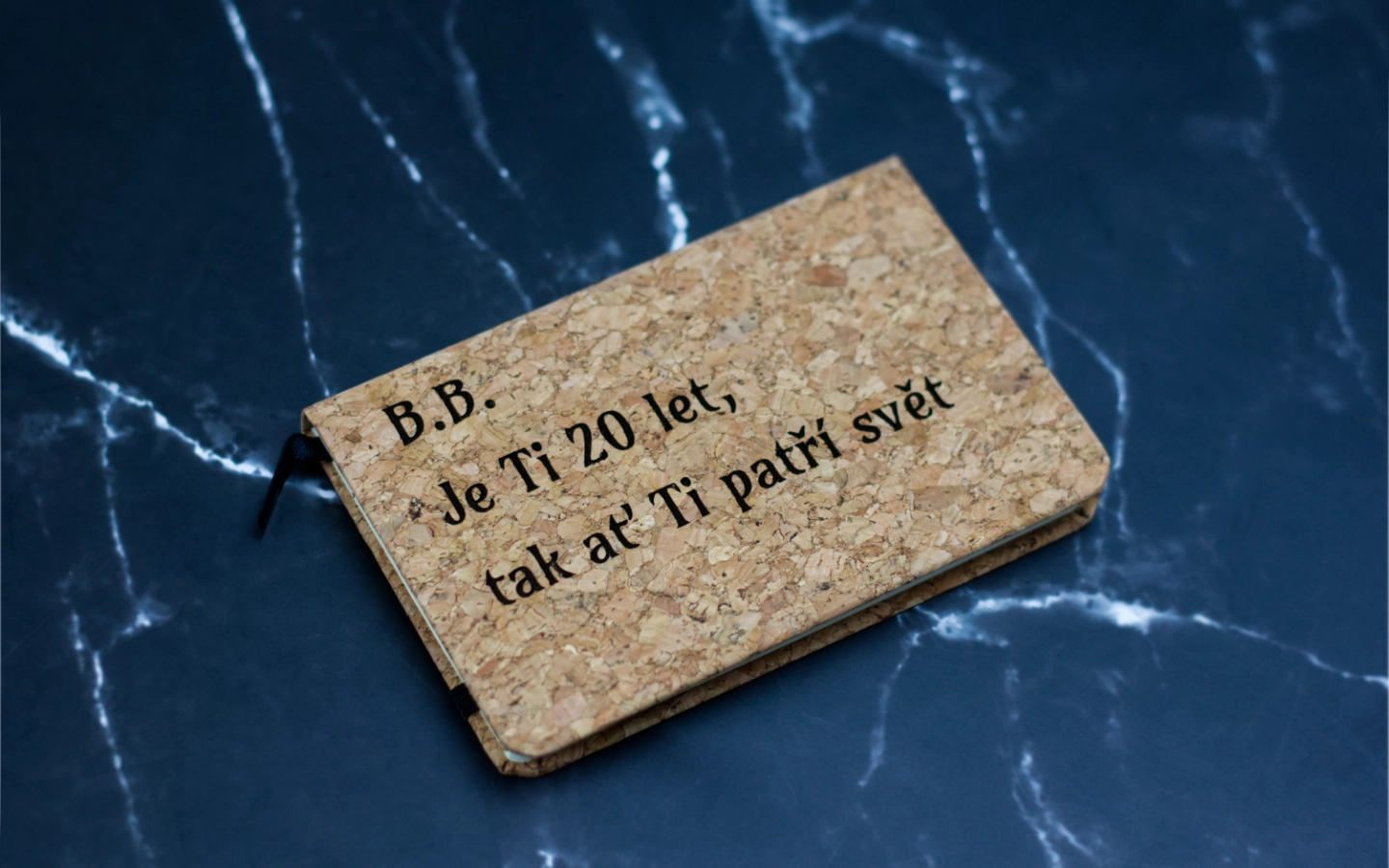 - Krásný korkový deník A6 vhodný pro gravírování motivu.