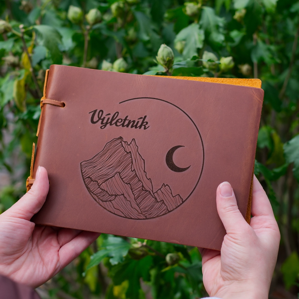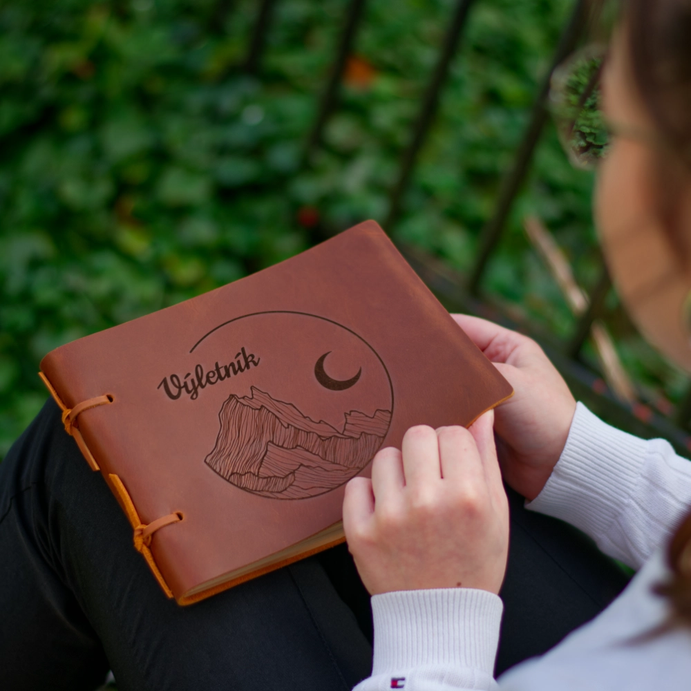 - Deník z kvalitní kůže vhodný pro gravírování motivu.