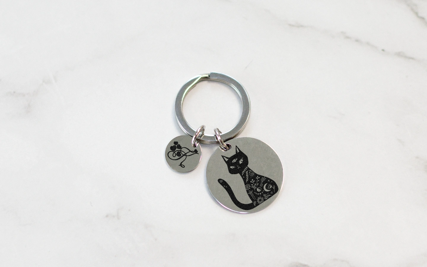 Elegantní klíčenka s přívěsky z odolné nerezové oceli – větší kolečko o průměru 25 mm a menší o průměru 12 mm – nabízí jedinečnou možnost vlastního gravírování. Ať už si přejete vyjádřit lásku, vděčnost, inspiraci nebo připomenout důležitý moment, tento kousek bude originálním a trvalým symbolem.