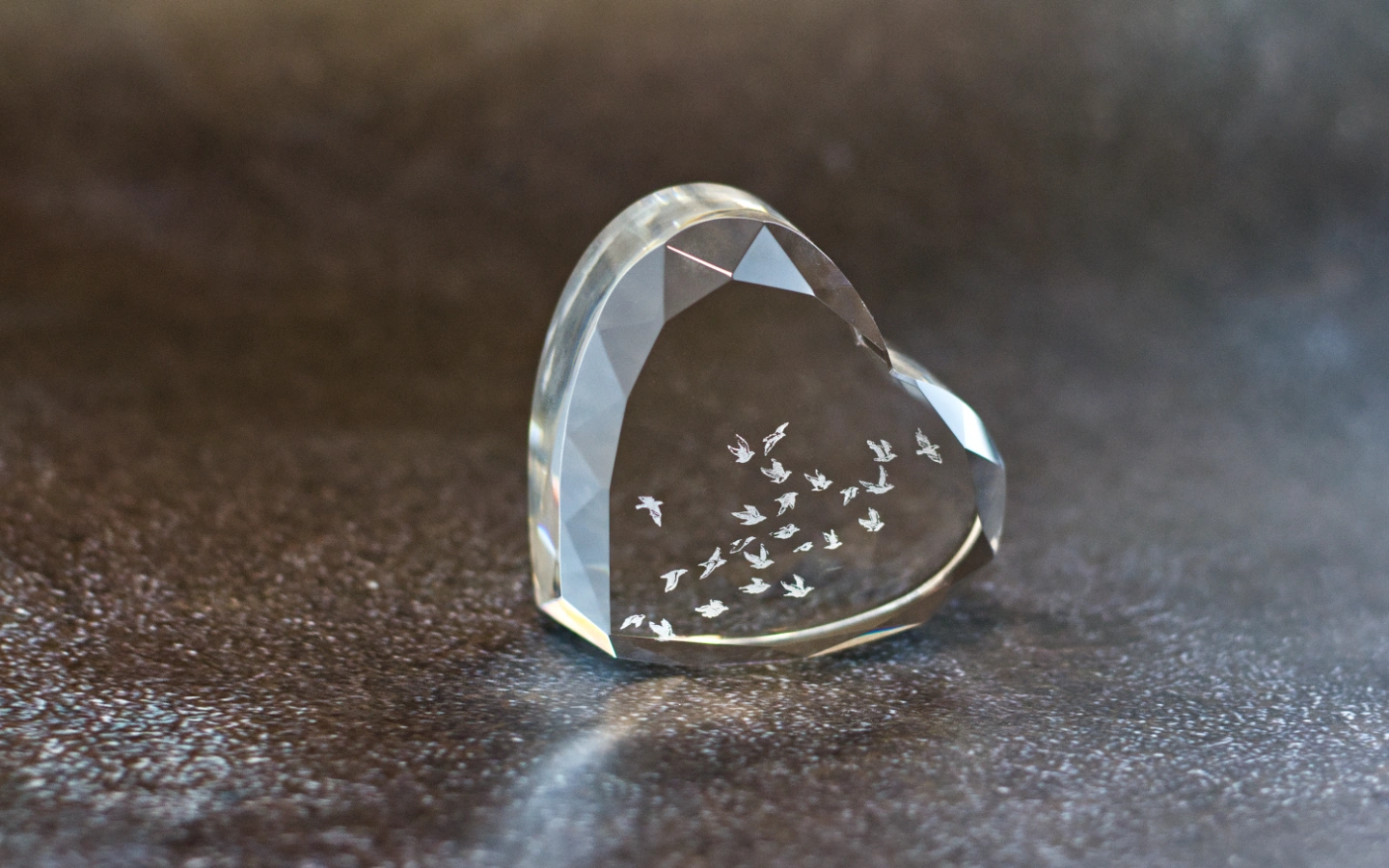 Personalizované křišťálové srdce s gravírováním fotky nebo věnování. Originální dárek na výročí, svatbu i z lásky.