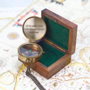 Jedinečný motiv kompasu s dvěma gravírováními na vnější a vnitřní straně víka. Na kompas vyhotovíme motiv krajiny a citát dovnitř víčka.